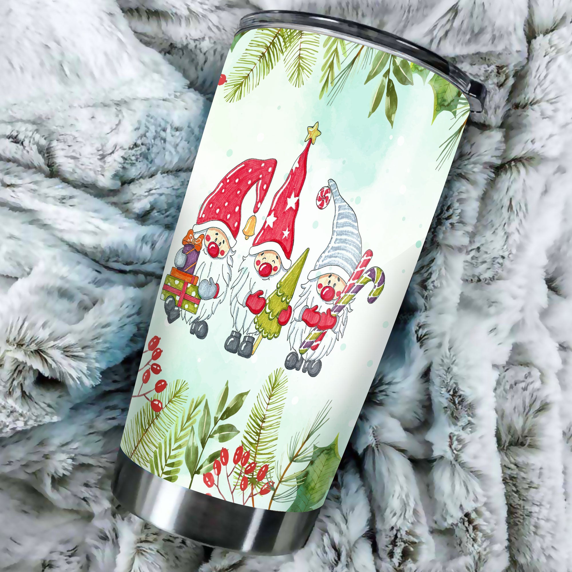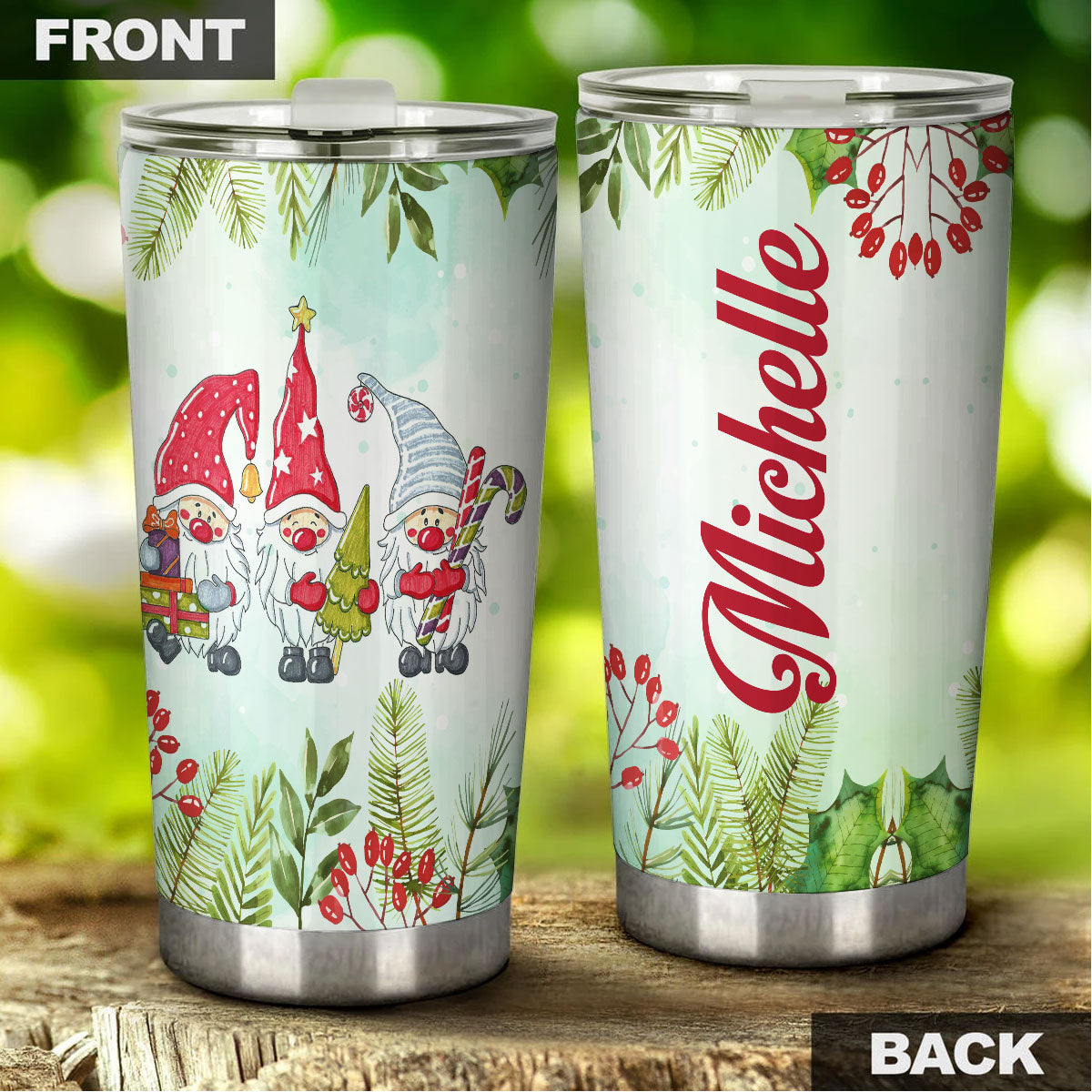 Personalized Gnomes Wearing Santa Hat Merry Christmas Stainless Steel Tumbler - Double-Walled Insulation Thermal Cup With Lid Gift For Xmas Holiday