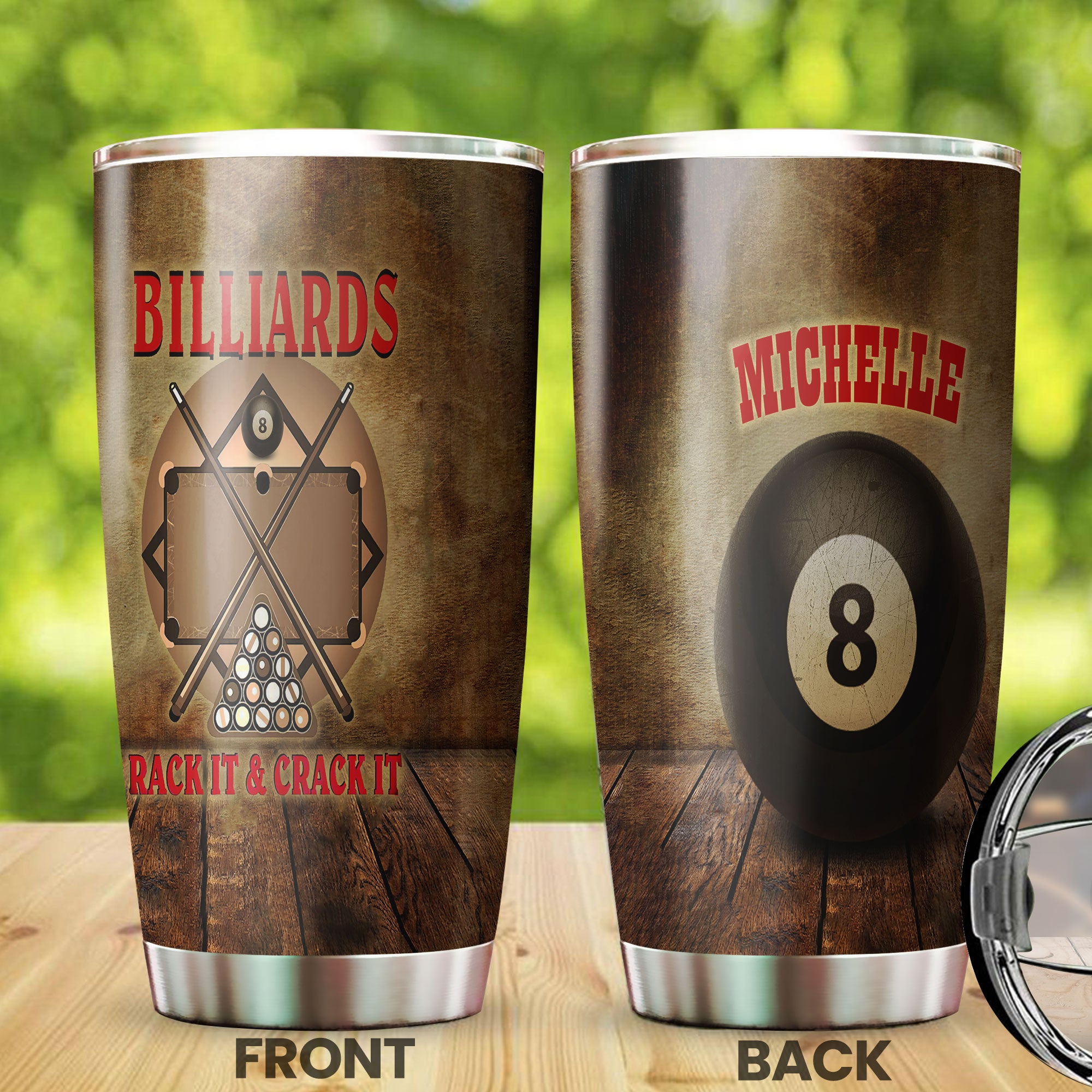 Camellia Personalized Billiards Rack It Crack It Stainless Steel Tumbler - Double-Walled Insulation Thermal Cup With Lid Gift For Dad Sport Lover
