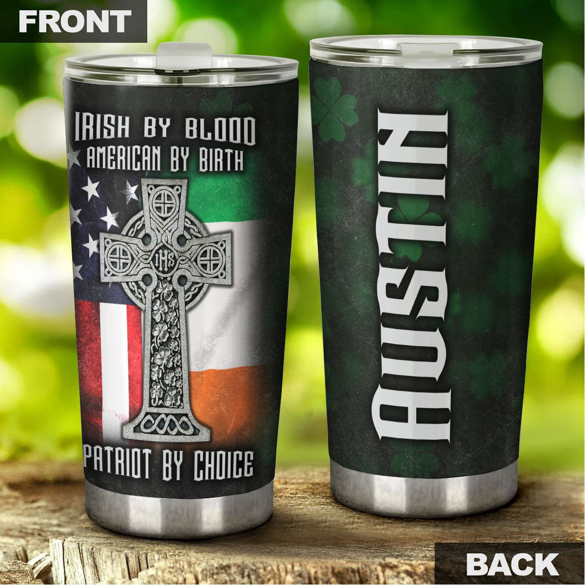 Personalized American Irish Patriot By Choice US Flag Stainless Steel Tumbler - Double-Walled Insulation Travel Thermal Cup With Lid Gift For Irish American 4th Of July