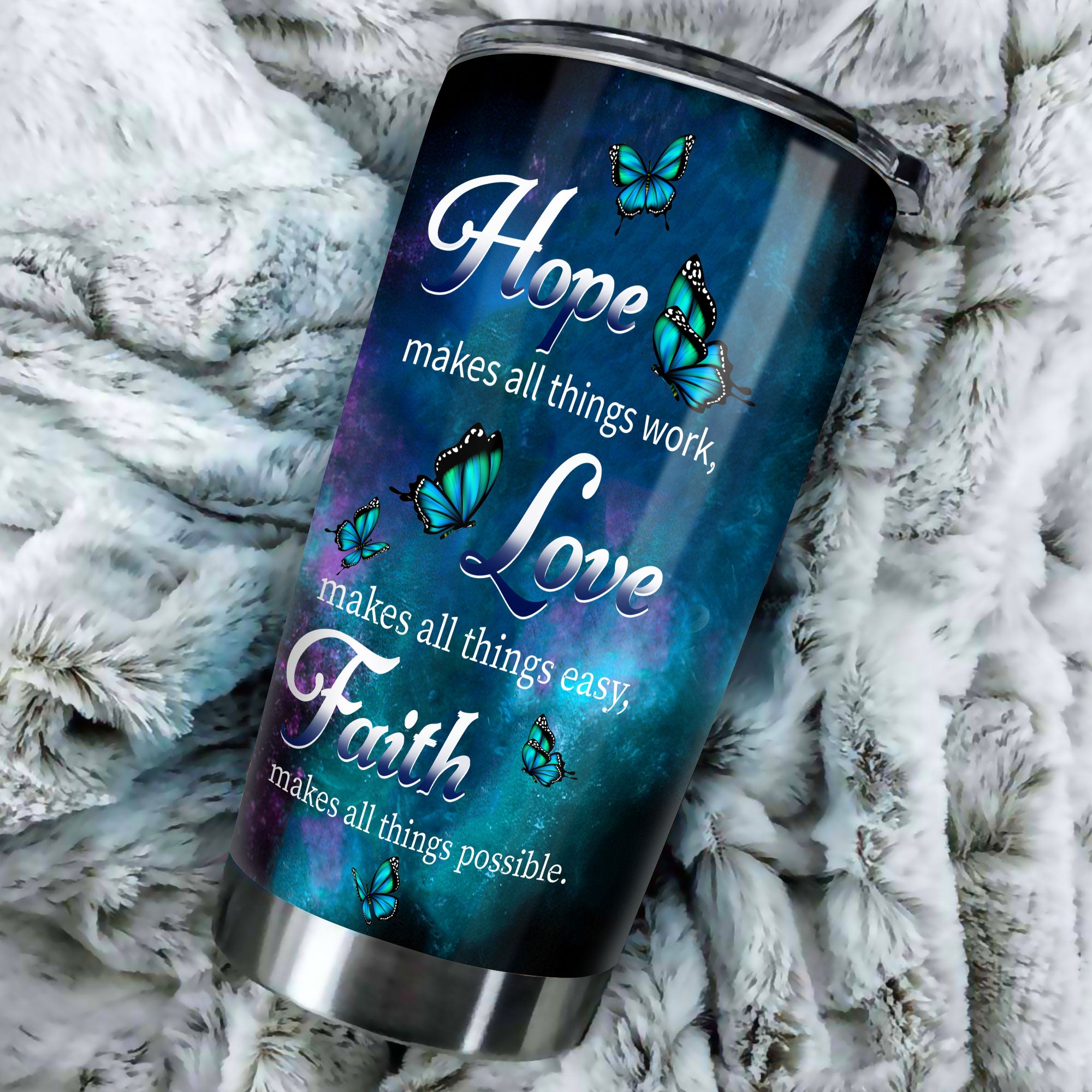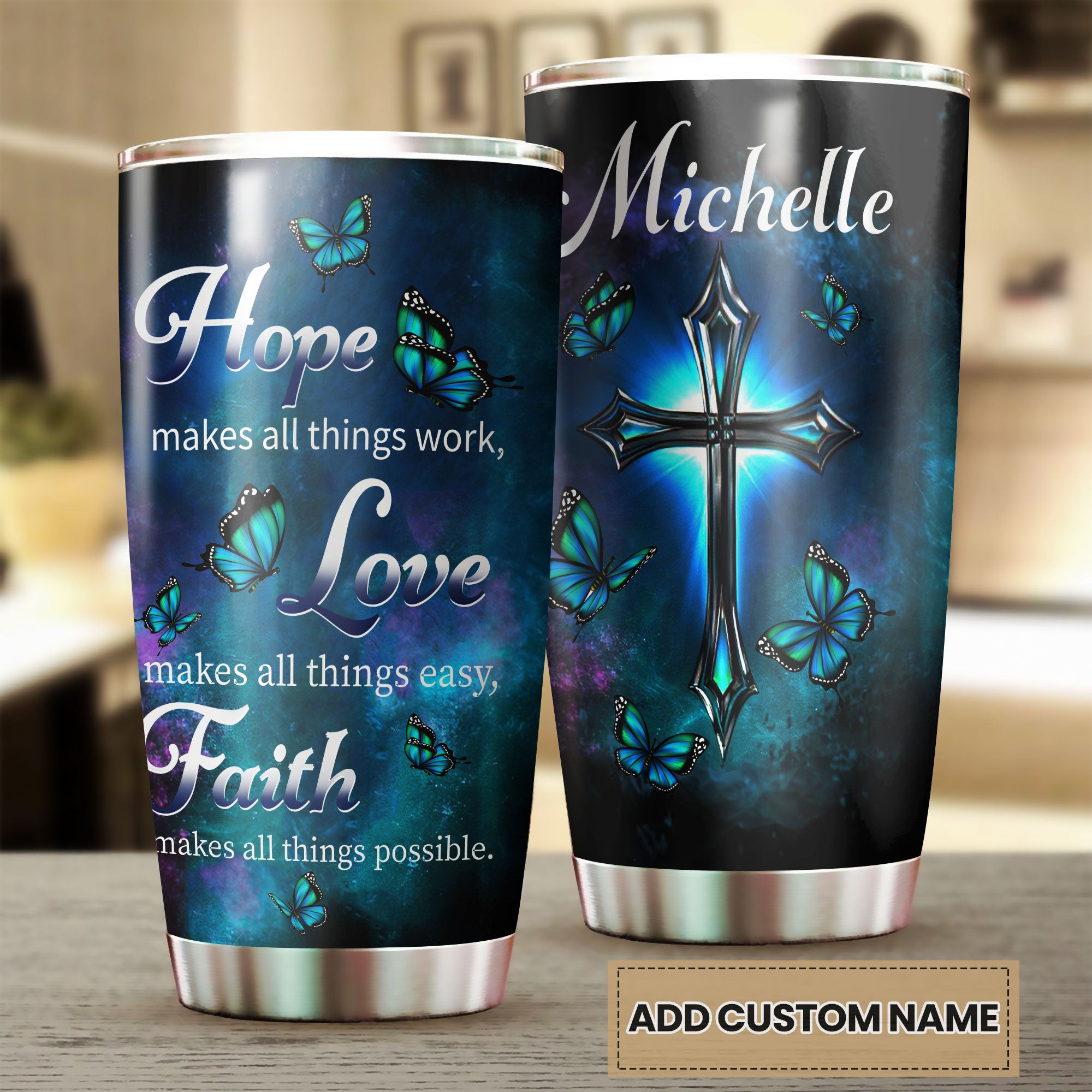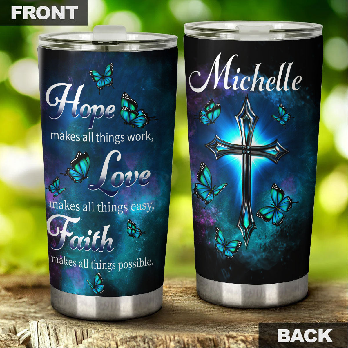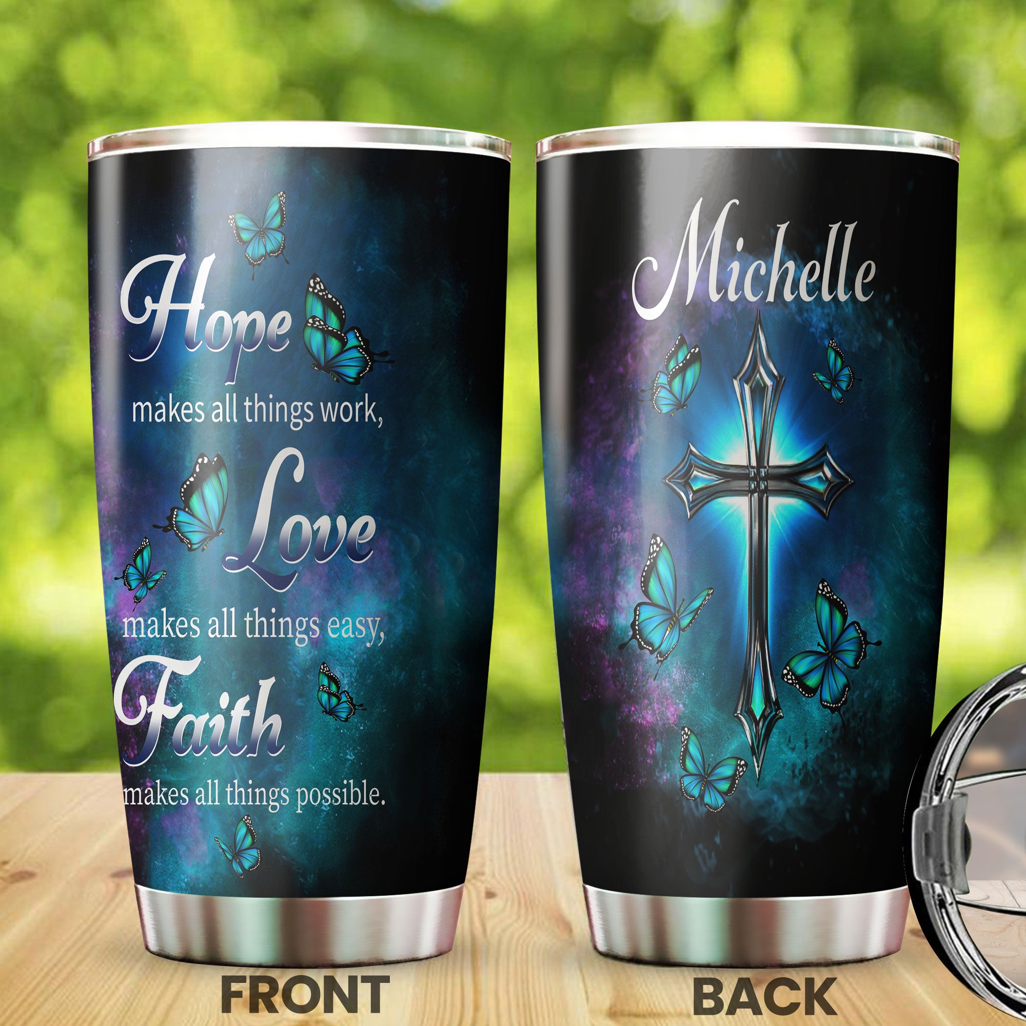 Personalized Blue Butterfly Live Love Faith Stainless Steel Tumbler - Double-Walled Insulation Vacumm Flask - Gift For Thanksgiving, Memorial Day