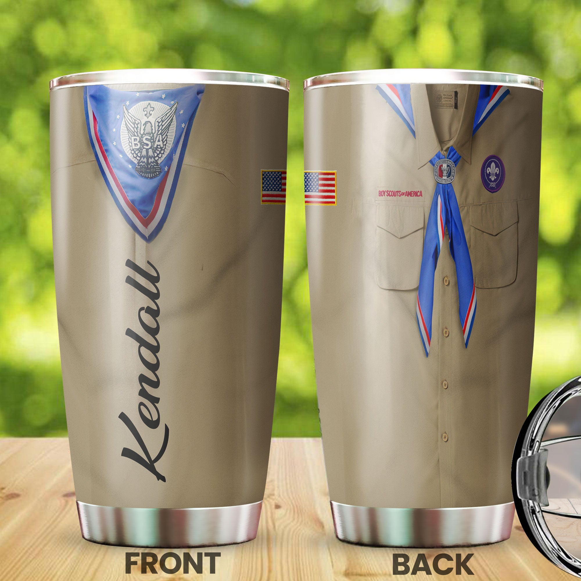 Camellia Personalized Boyscouts Of American Uniform Stainless Steel Tumbler - Double-Walled Insulation Travel Thermal Cup With Lid Gift For Boy Scouts Teenager