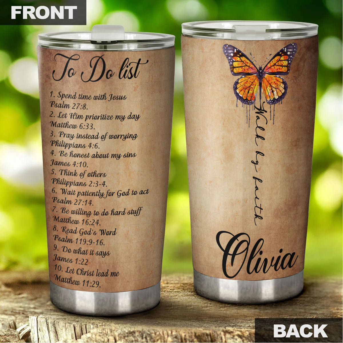 Personalized Butterfly Walk By Route To Do List Stainless Steel Tumbler - Customized Double-Walled Insulation Travel Thermal Cup With Lid