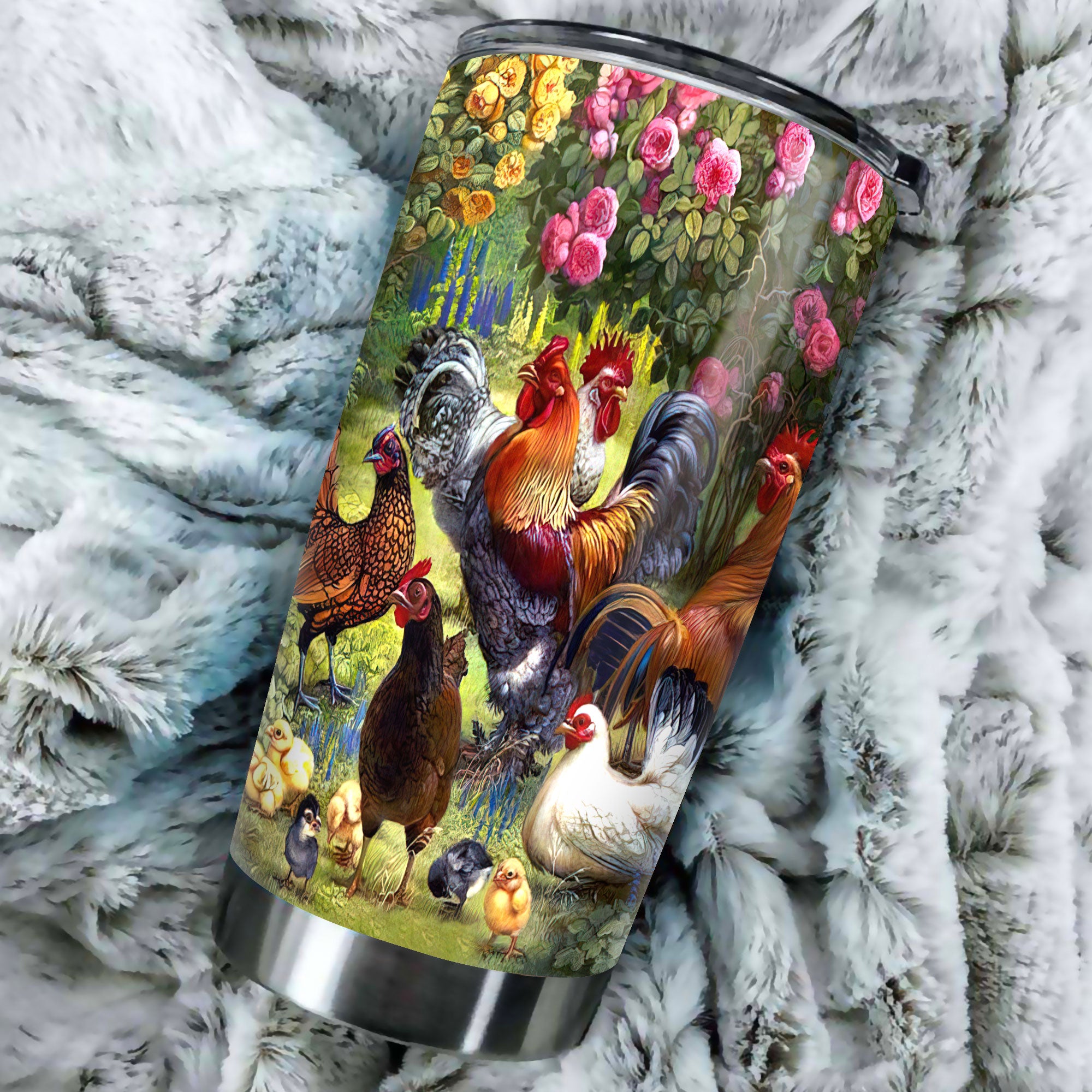 Camellia Personalized Chicken Farm Stainless Steel Tumbler - Customized Double-Walled Insulation Travel Thermal Cup With Lid
