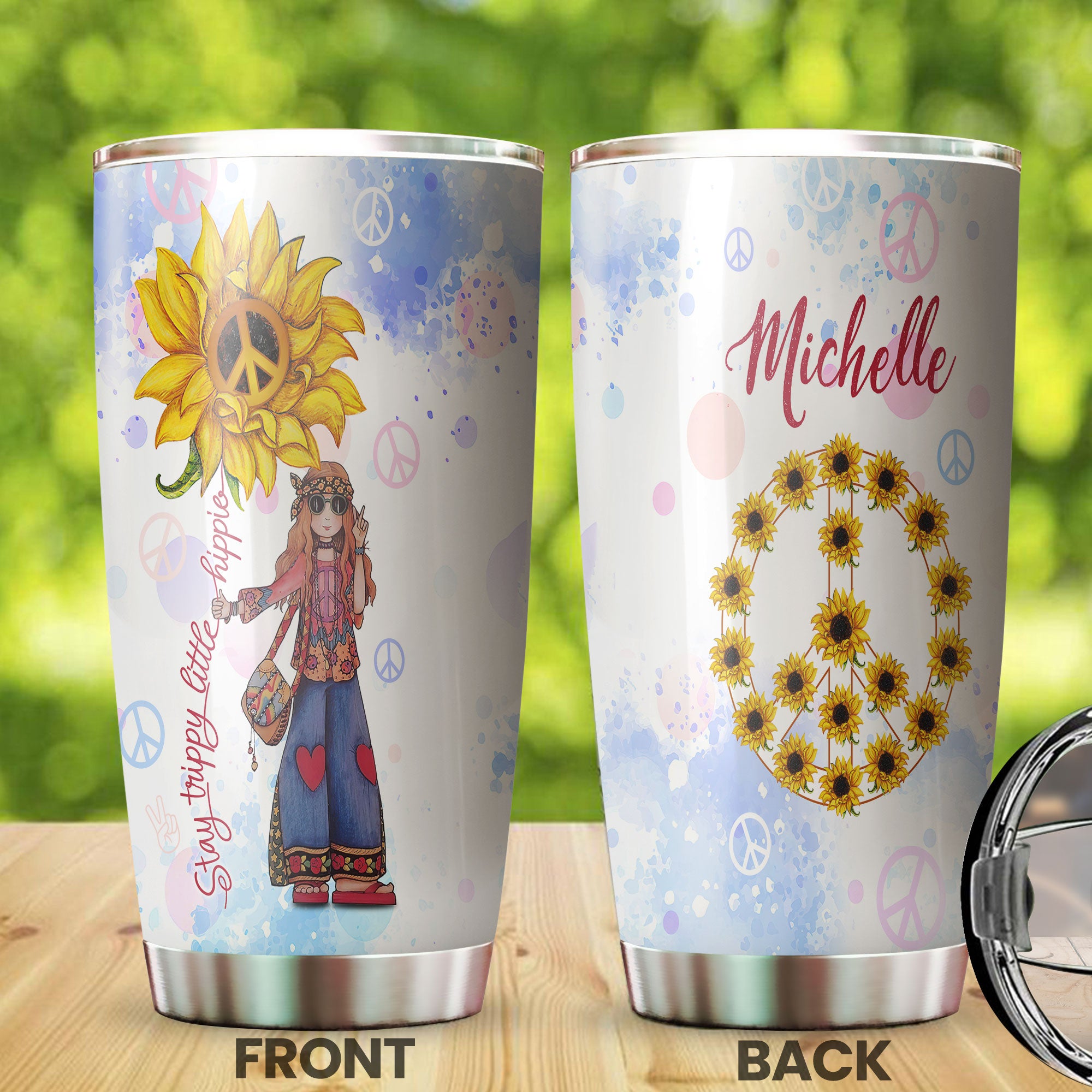 Personalized Girl And Sunflower Stay Trippy Little Happy Stainless Steel Tumbler-Double-Walled Insulation Travel Cup With Lid