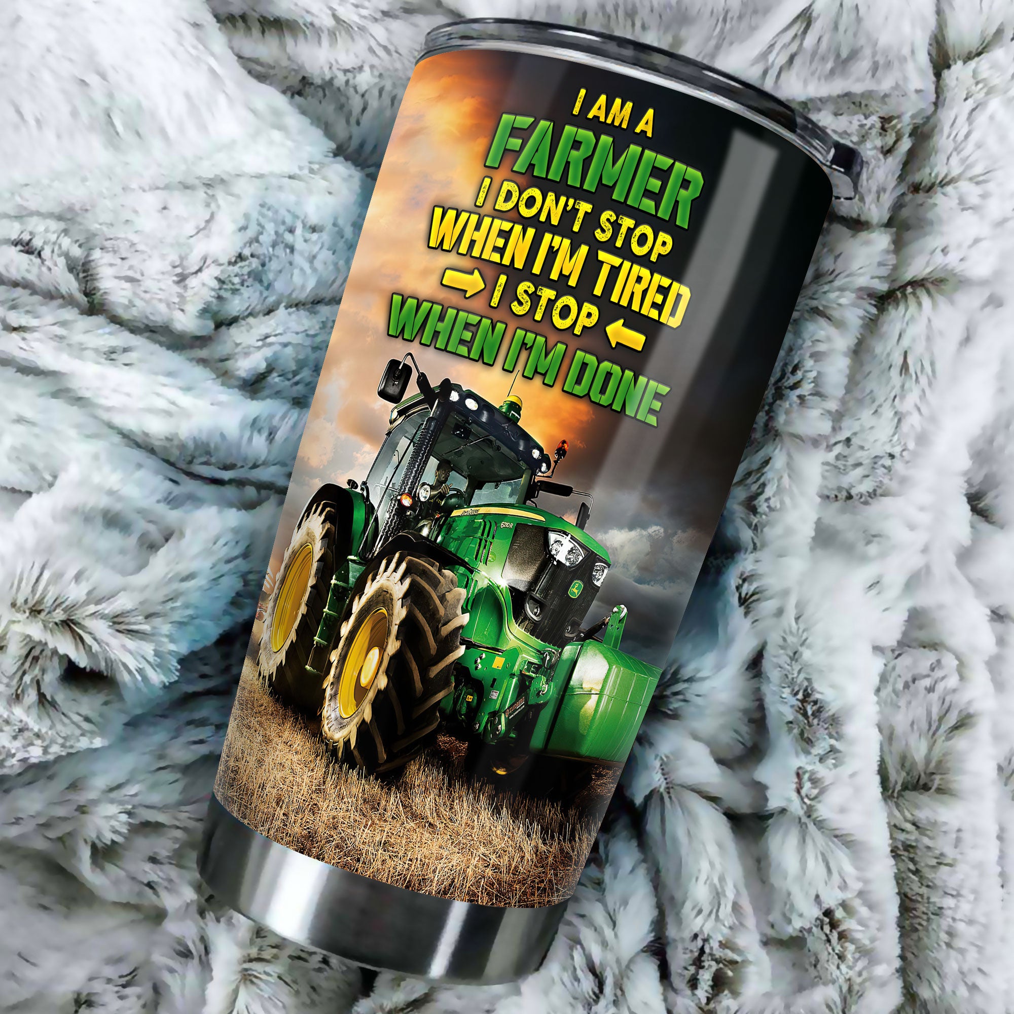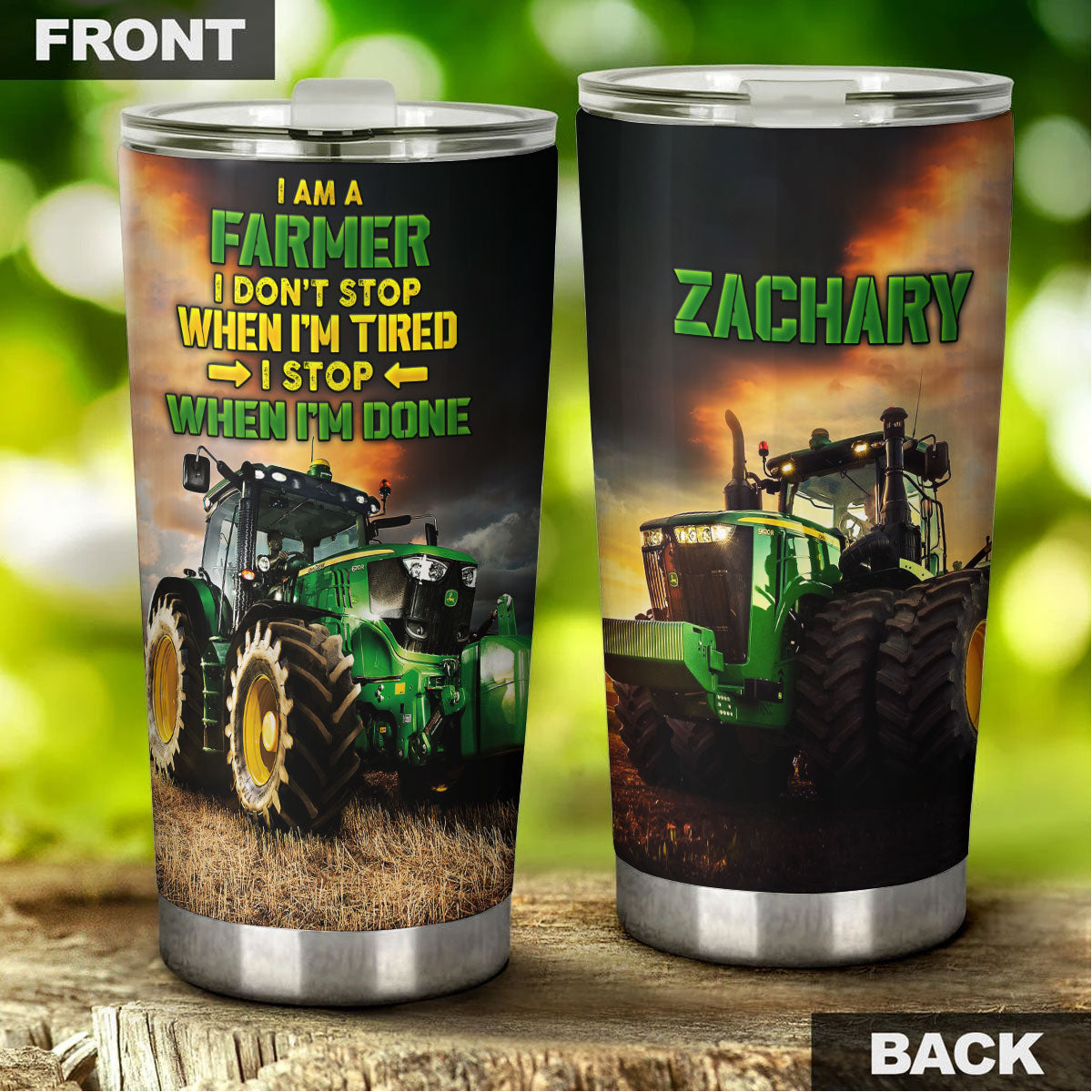 Personalized Green Tractor Don't Stop When I'm Tired Farming Stainless Steel Tumbler - Double-Walled Insulation Travel Thermal Cup With Lid Gift For Farmer Tractor Lover