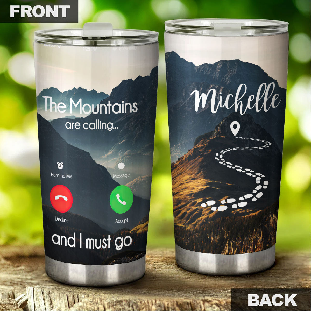 Camellia Personalized Hiking The Mountains Are Calling And I Must Go Stainless Steel Tumbler - Customized Double-Walled Insulation Travel Thermal Cup With Lid Gift For Hiker