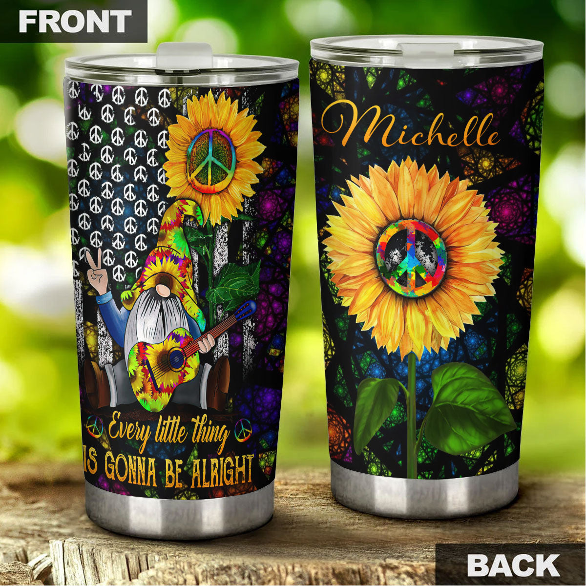 Camellia Personalized Sunflower Hippie Gnome Gonna Be Alright Stainless Steel Tumbler - Double-Walled Insulation Thermal Cup With Lid Gift For Hipster Peace Lover