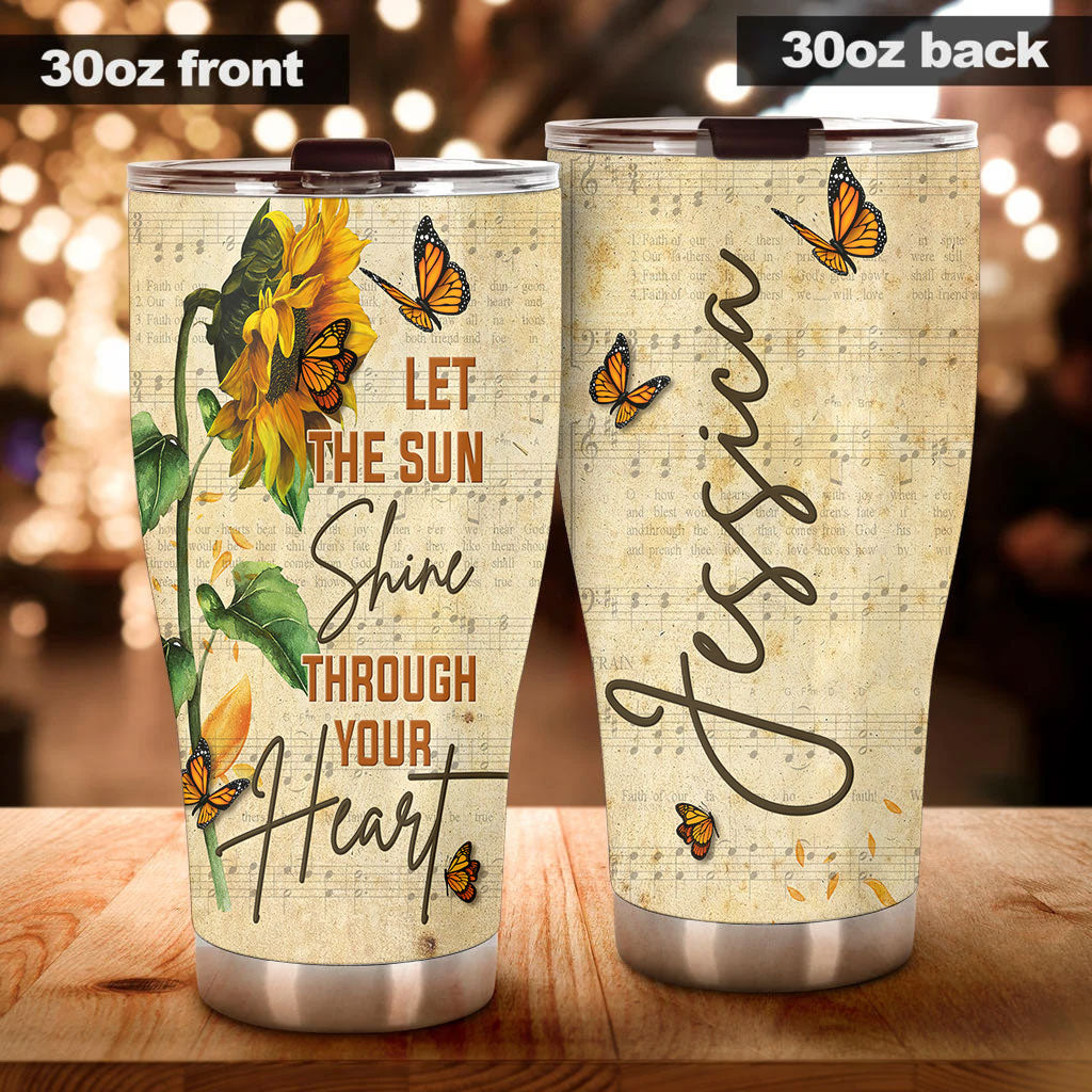 Camellia Personalized Sunflower Hippie Let The Sun Shine Through Heart Stainless Steel Tumbler - Double-Walled Insulation Travel Thermal Cup With Lid Gift For Hipster Girl