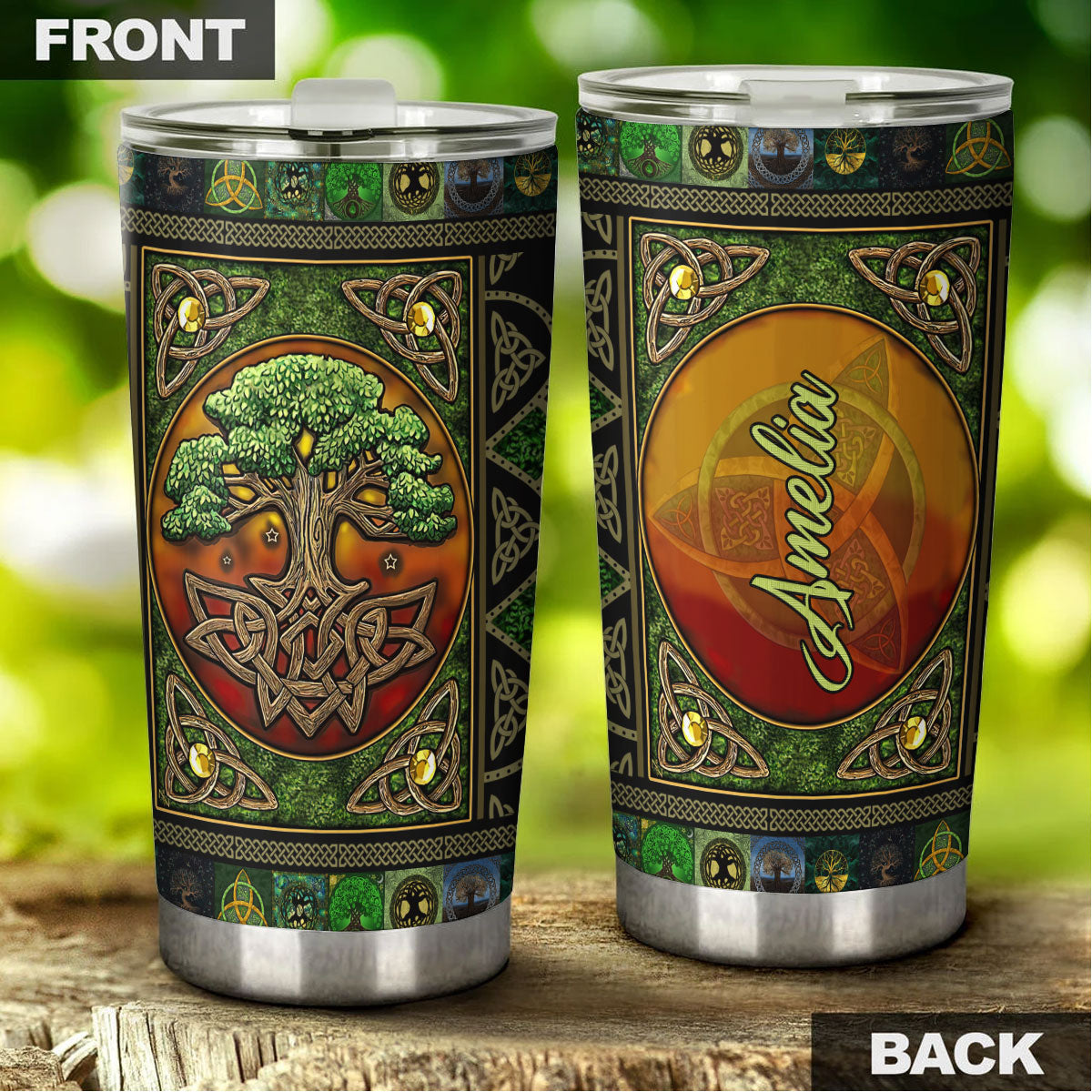 Personalized Tree Celtic Art Stainless Steel Tumbler - Customized Double-Walled Insulation Travel Thermal Cup With Lid