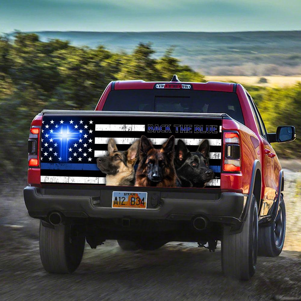 German Shepherd Back The Blue Christian Cross truck Tailgate Decal Sticker Wrap Tailgate Wrap Decals For Trucks