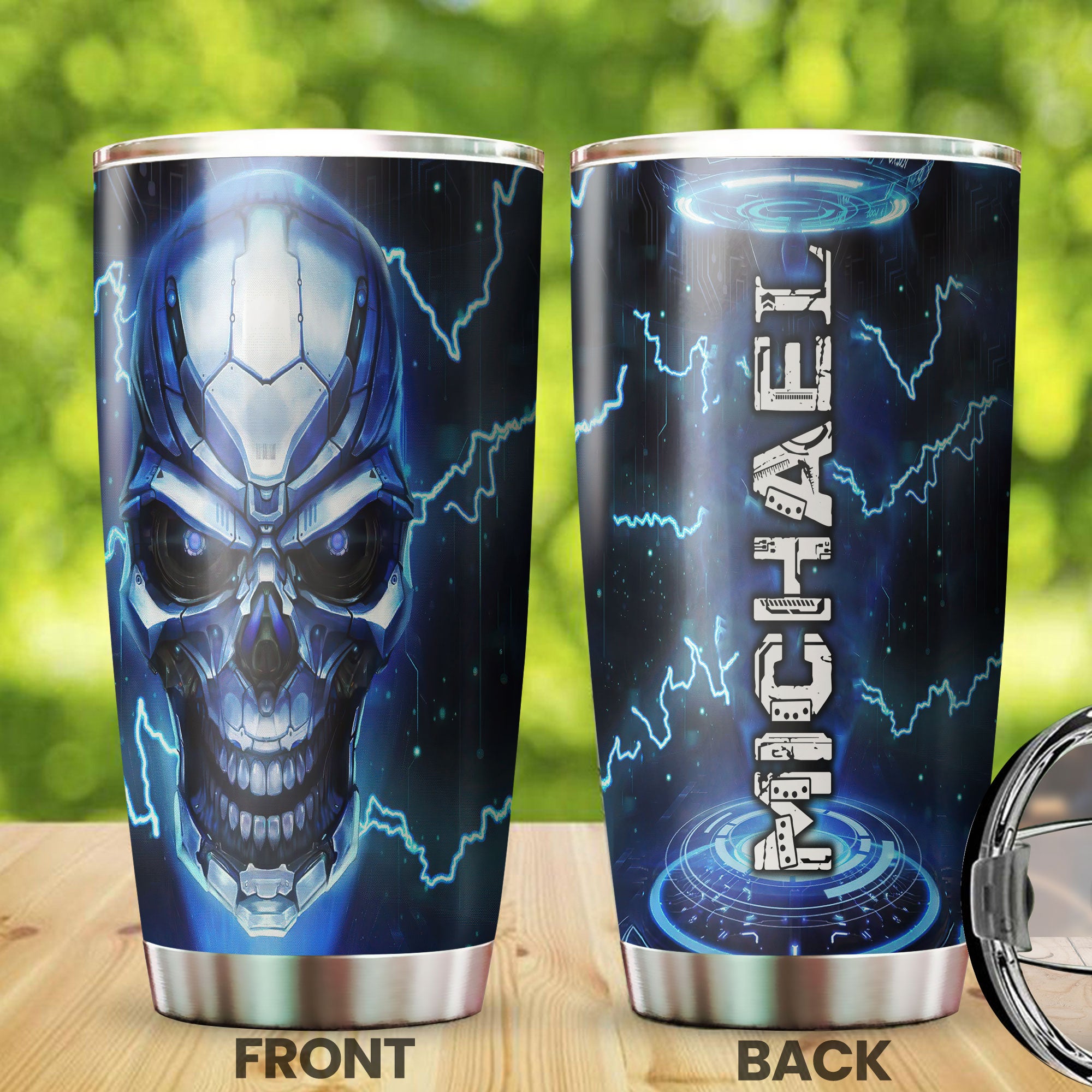 Personalized Cyborg Skull Skeleton Graphics Stainless Steel Tumbler - Double-Walled Insulation Travel Thermal Cup With Lid Gift For Skull Lover Trucker Biker Men