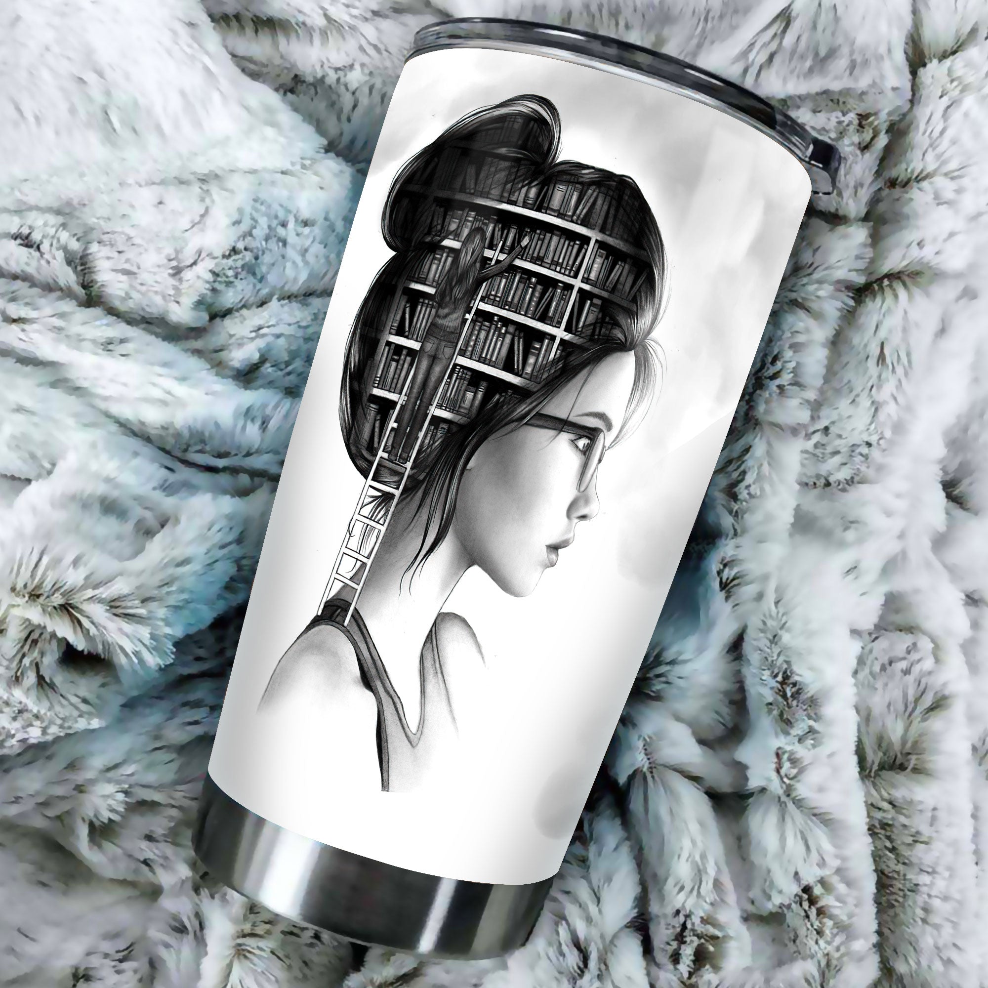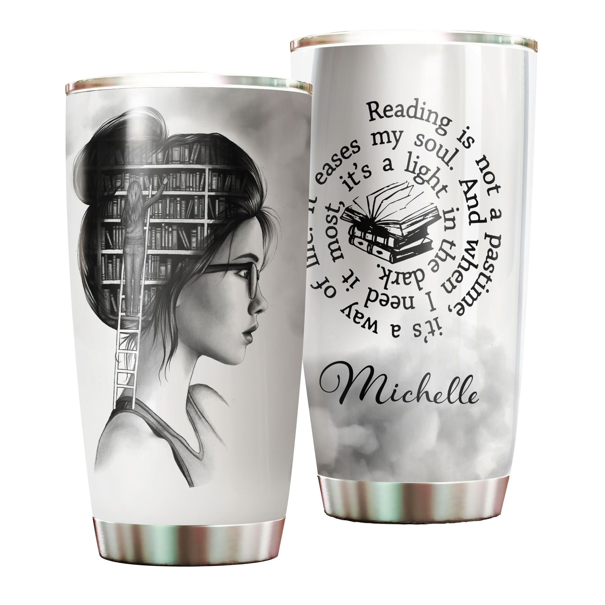 Camellia Personalized Girl Reading A Light In The Dark Stainless Steel Tumbler - Double-Walled Insulation Thermal Cup With Lid Gift For Nerd Reader Book Lover