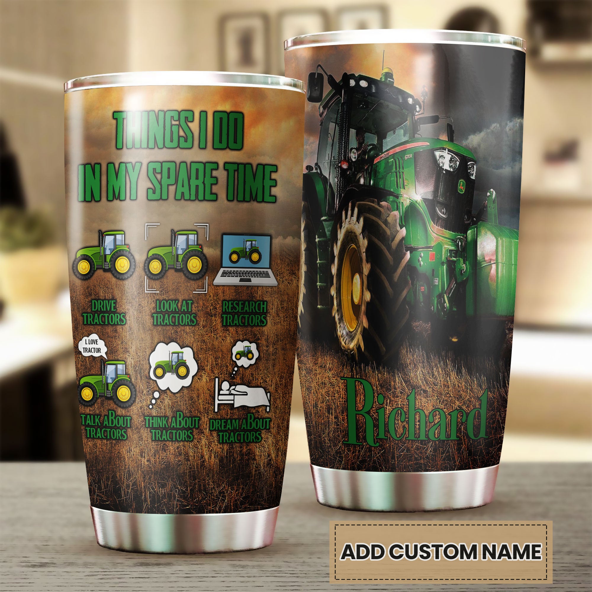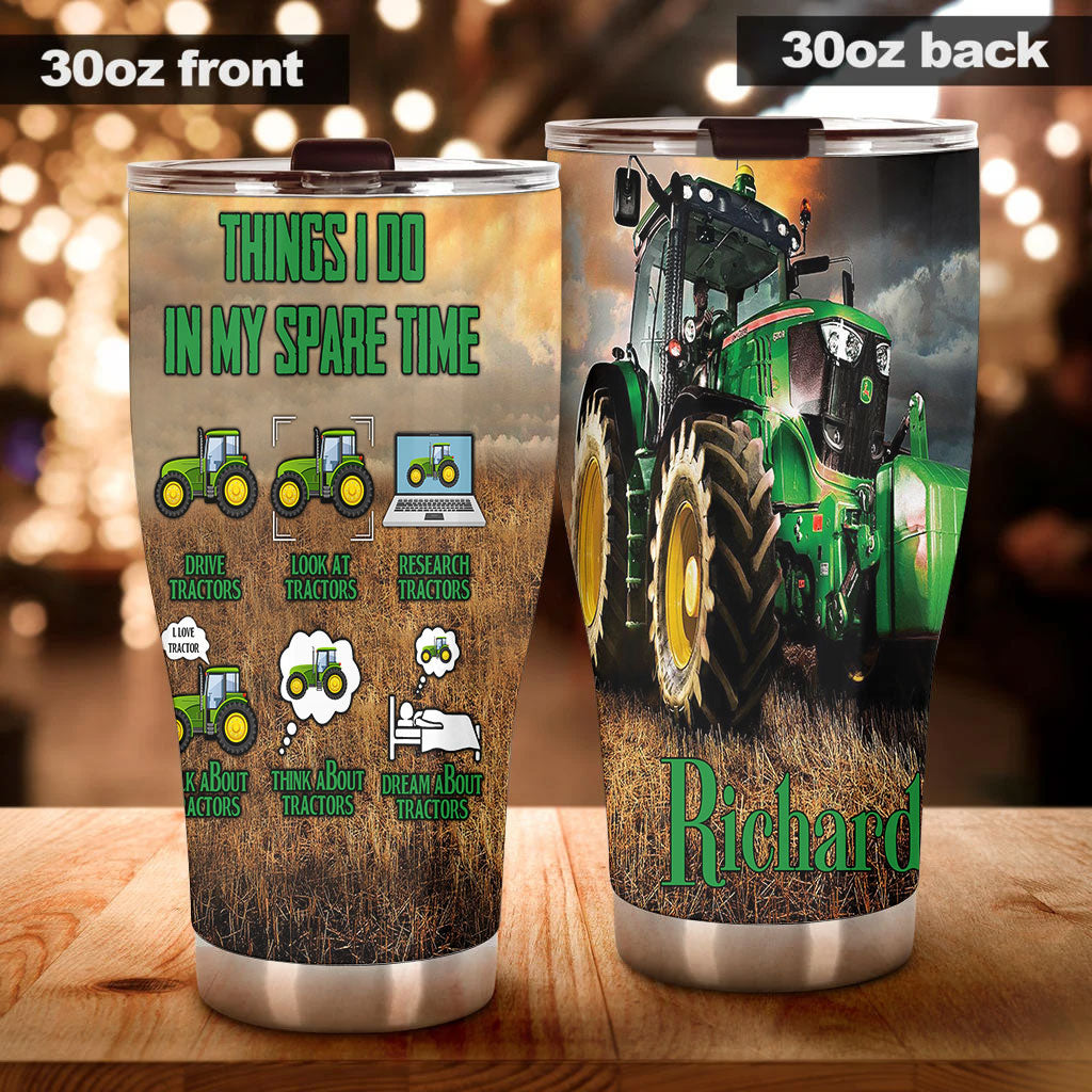 Camellia Personalized Green Tractor Things I Do In My Spare Time Farming Stainless Steel Tumbler - Double-Walled Insulation Travel Thermal Cup With Lid Gift For Farm Tractor Lover