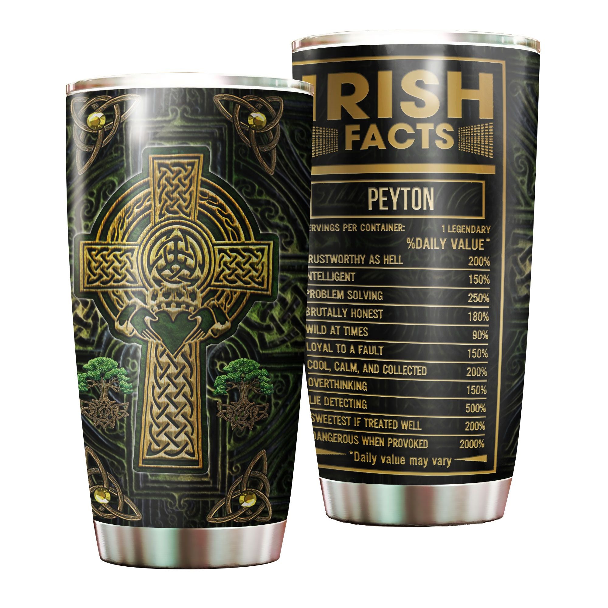 Camellia Personalized Irish Facts Metal Style Stainless Steel Tumbler - Double-Walled Insulation Travel Thermal Cup With Lid Gift For Faith Believer