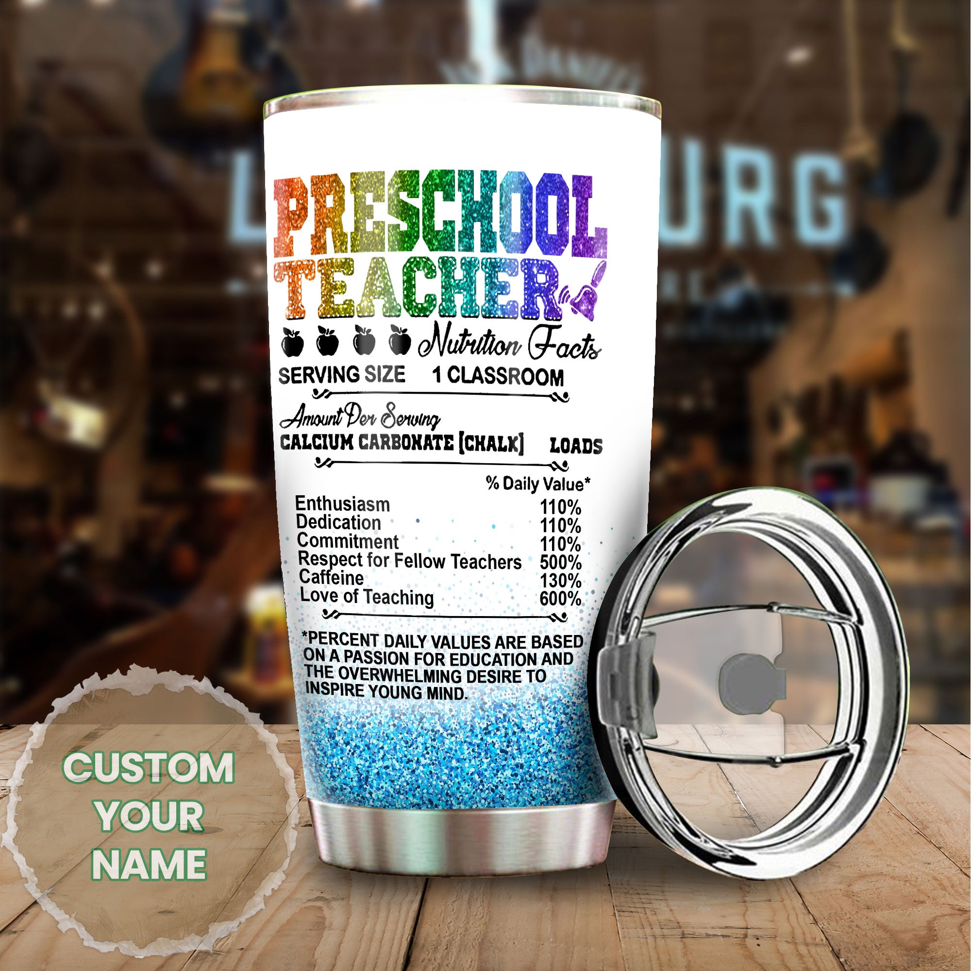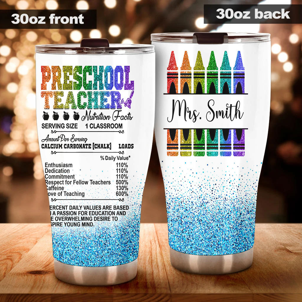 Personalized Rainbow Preschool Teacher Nutrition Facts Crayon Stainless Steel Tumbler - Double-Walled Insulation Travel Thermal Cup With Lid Gift For Back To School