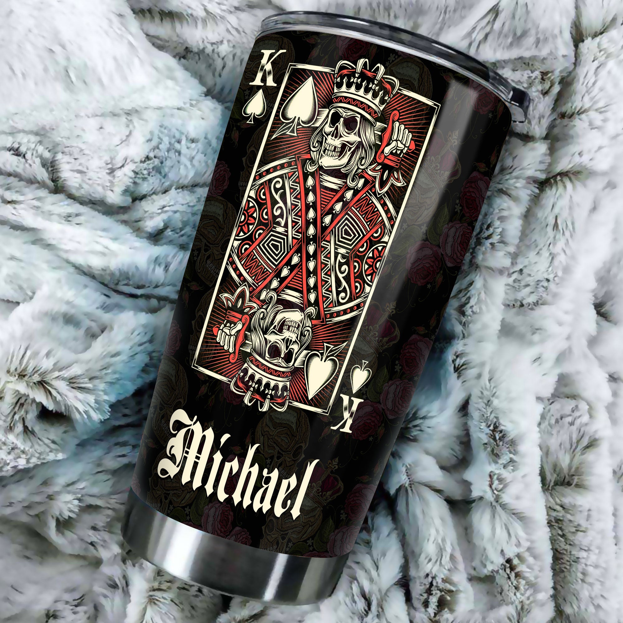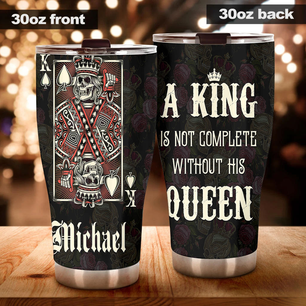 Camellia Personalized Skull King Not Complete Without His Queen Stainless Steel Tumbler - Double-Walled Insulation Travel Thermal Cup With Lid Gift For Valentines Day Couple