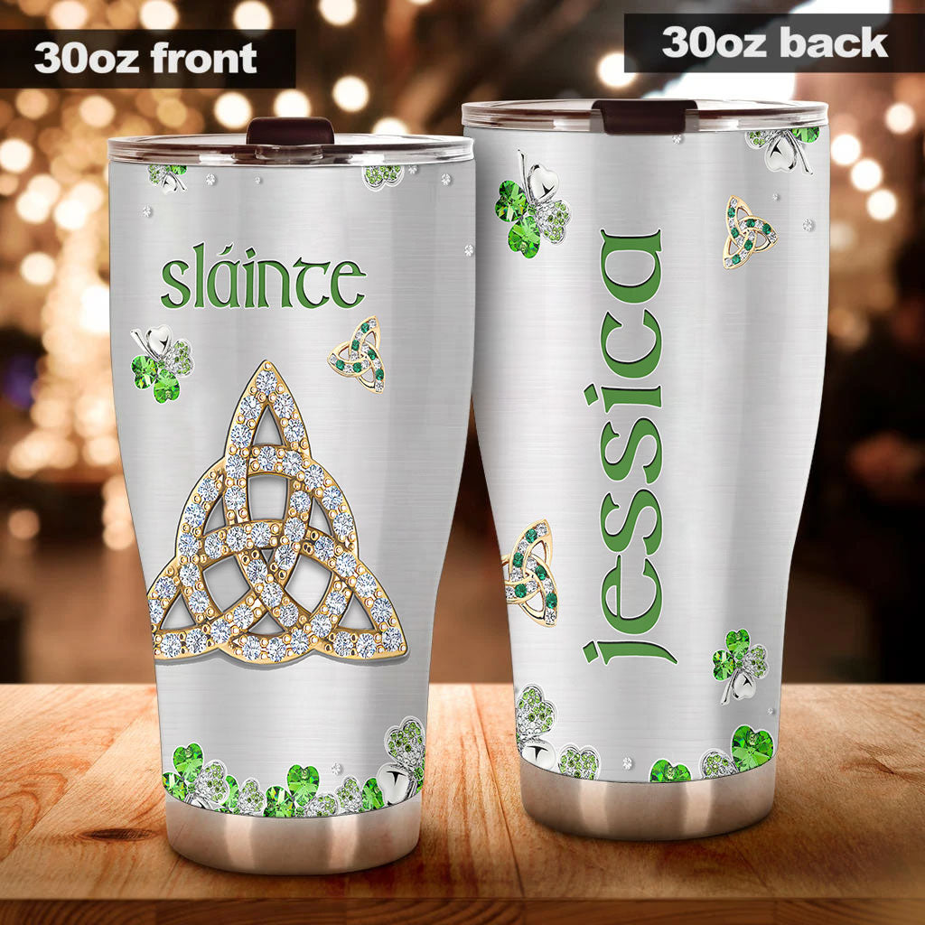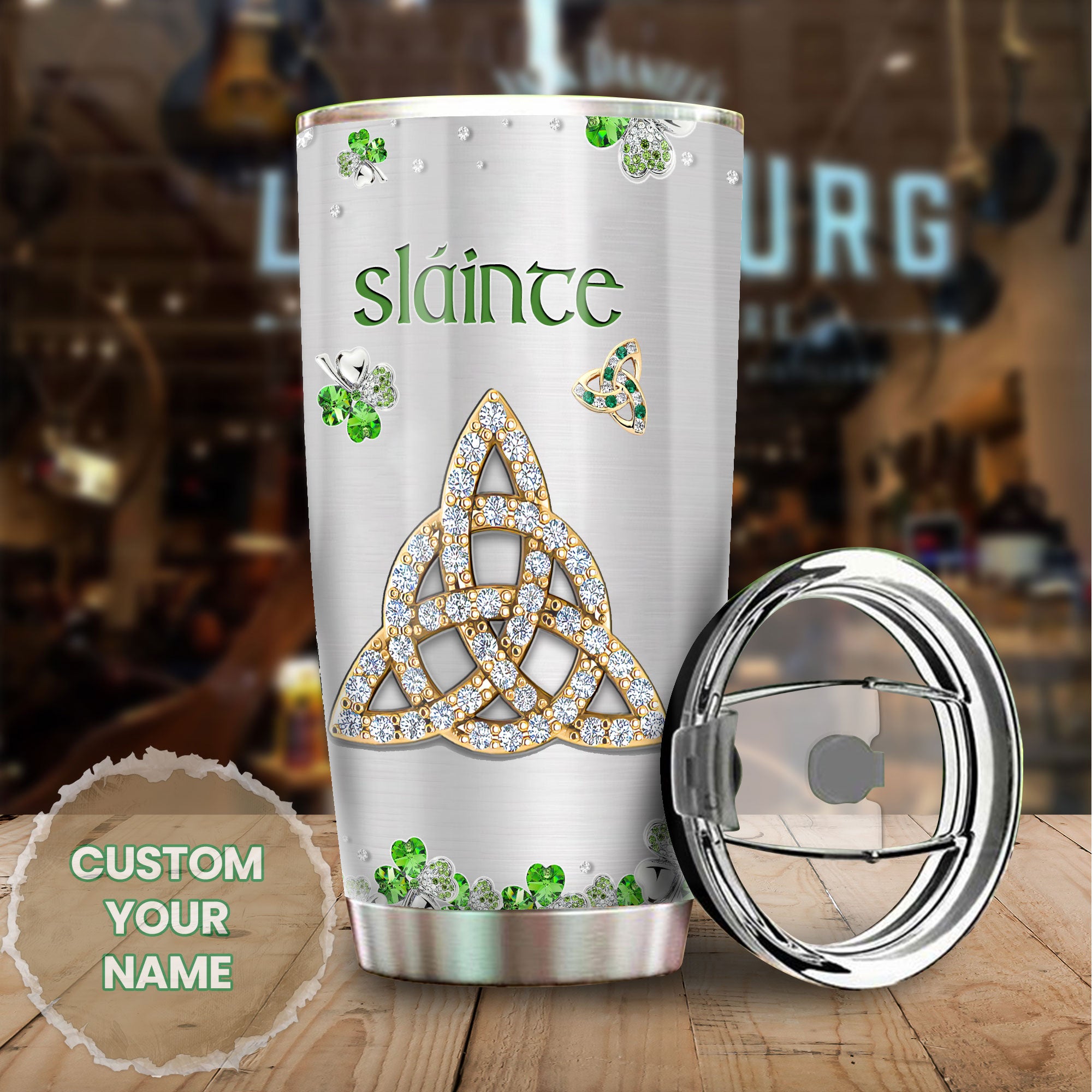 Personalized Slainte Irish Jewelry Style Green Stainless Steel Tumbler - Double-Walled Insulation Travel Thermal Cup With Lid