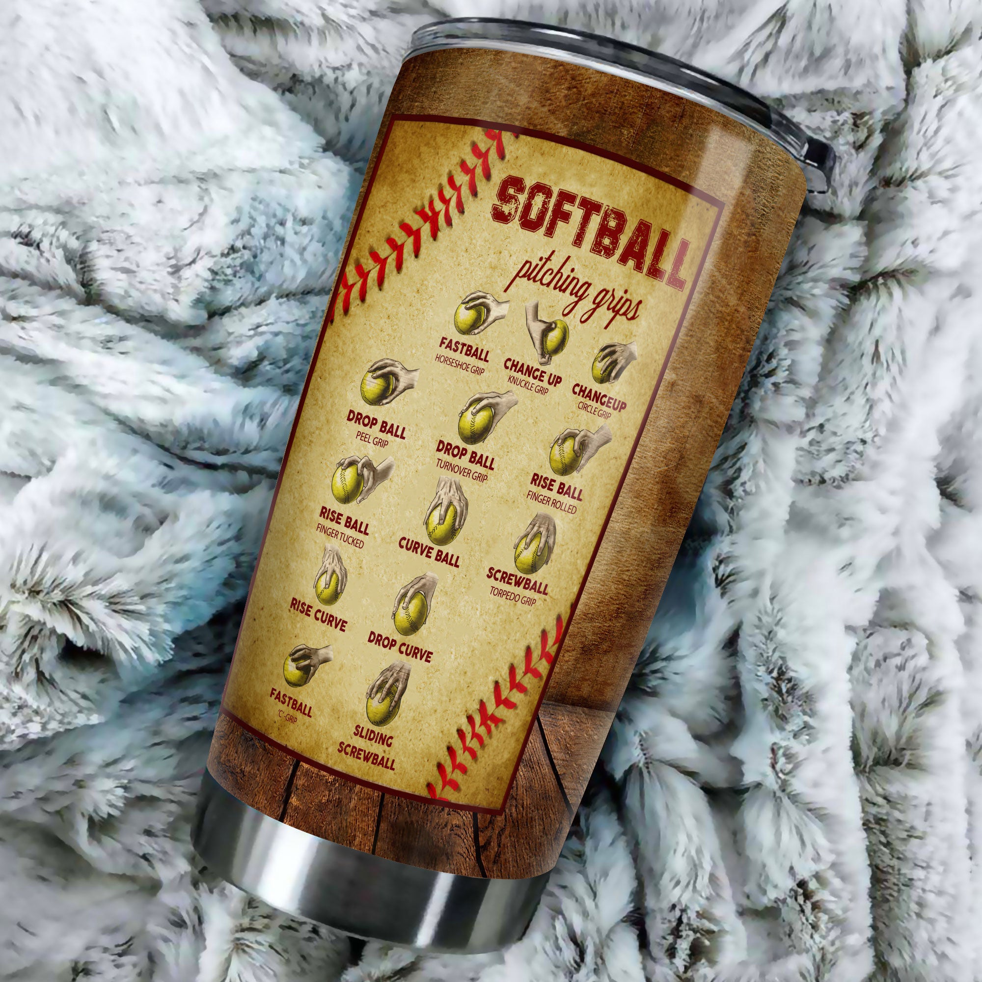 Personalized Softball Pitching Grips Knowledge Stainless Steel Tumbler - Double-Walled Insulation Sporty Thermal Cup With Lid Gift For Sport Lover Softball Player