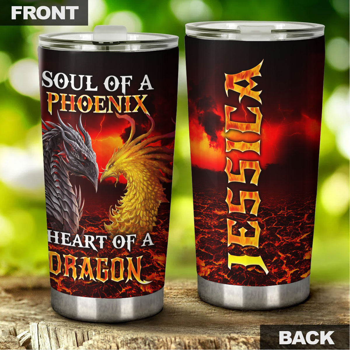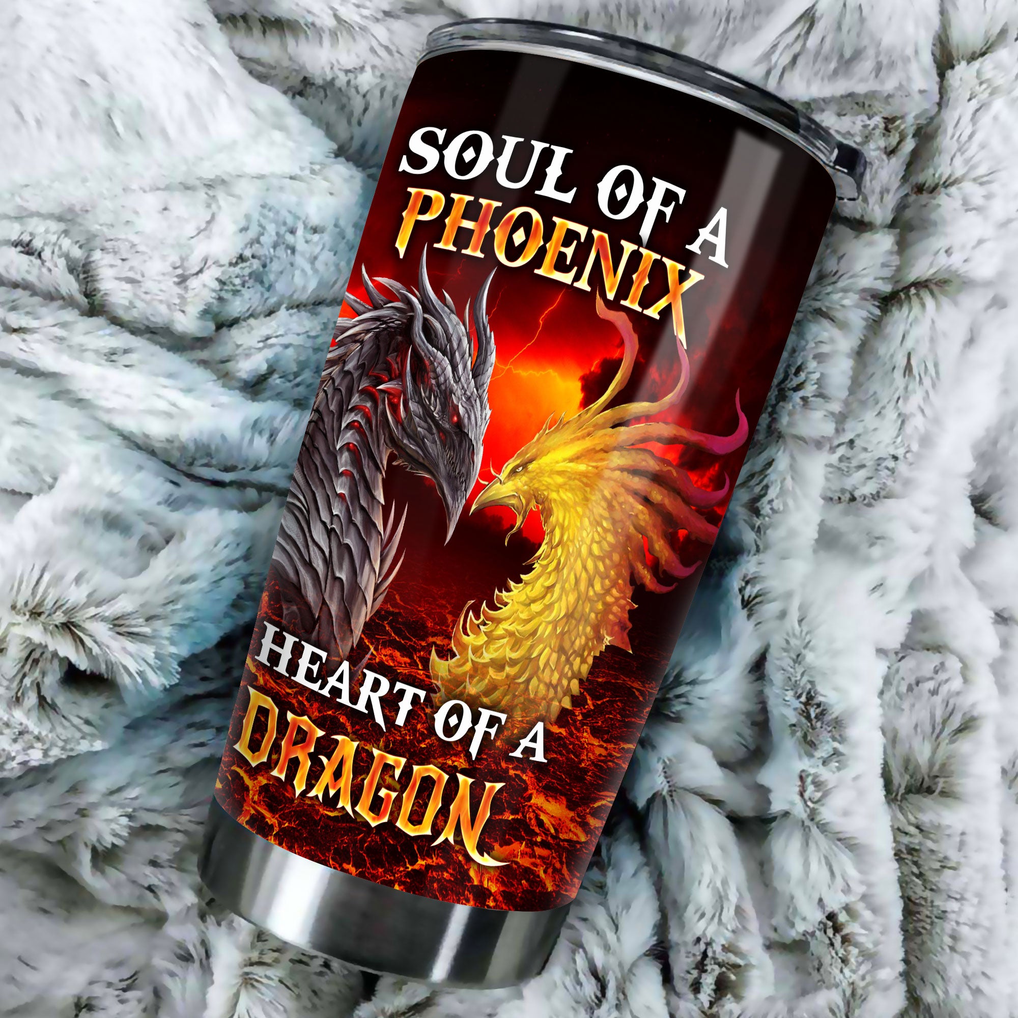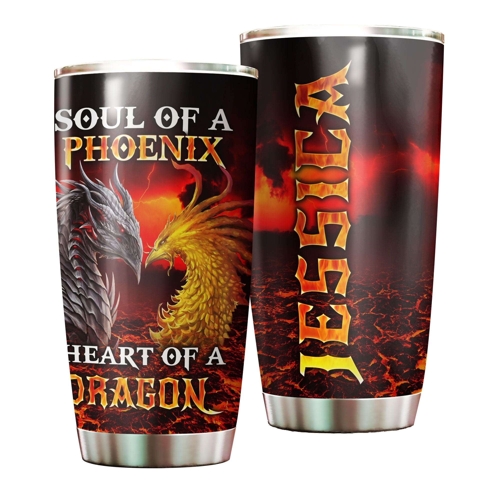 Personalized Soul Of Phoenix Heart Of Dragon Graphics Stainless Steel Tumbler - Double-Walled Insulation Travel Thermal Cup With Lid Gift For Men Boy