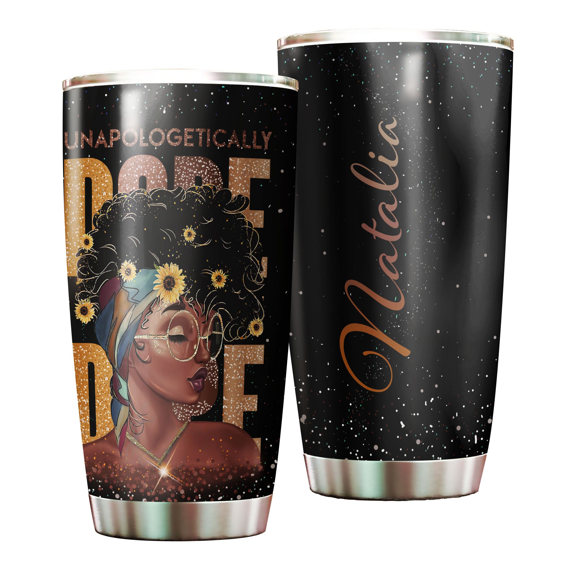 Camellia Personalized Unapologetically Dope Afro Girl Black Women Stainless Steel Tumbler - Double-Walled Insulation Travel Thermal Cup With Lid Gift For Hippie Girl Women